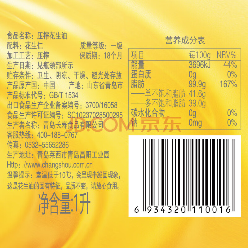 商品相册:第一坊 【保真花生油】冷榨花生油1L*4 礼盒装 食用油 团购 福利第