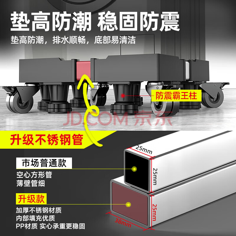 商品相册:贝石洗衣机支架底座 滚筒波轮通用冰箱空调冰柜移动支架多品牌通用洗衣机冰箱底座等4轮8脚第