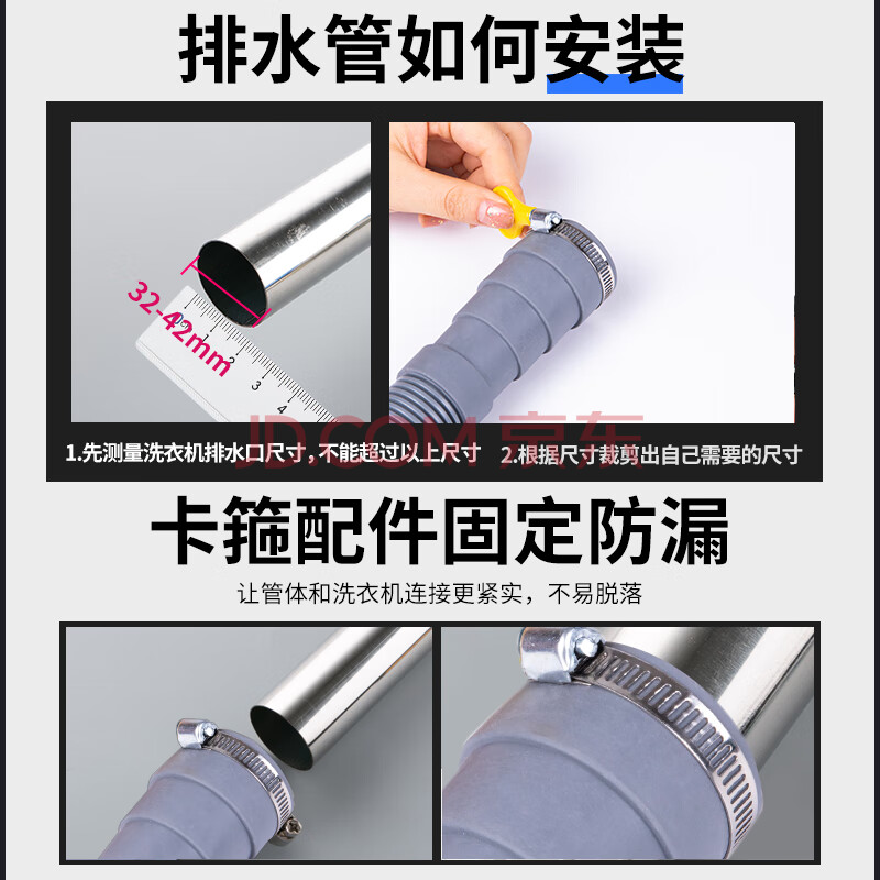 商品相册:贝石 洗衣机排水管 多口径带卡箍 通用全自动滚筒波轮洗衣机下水管出水管延长管 4M装第