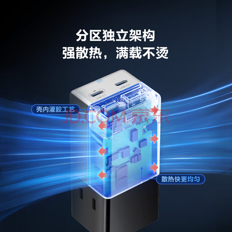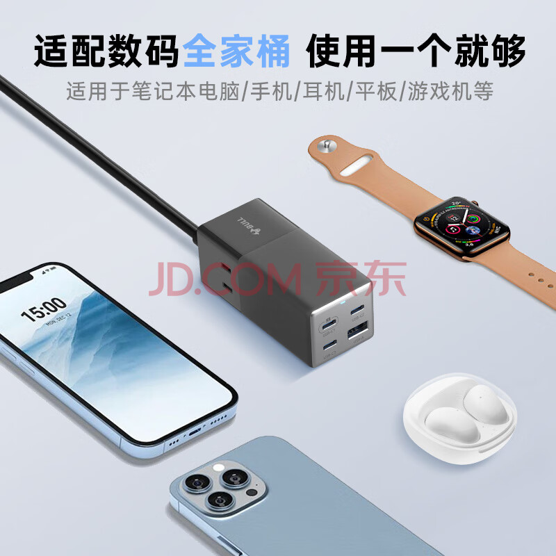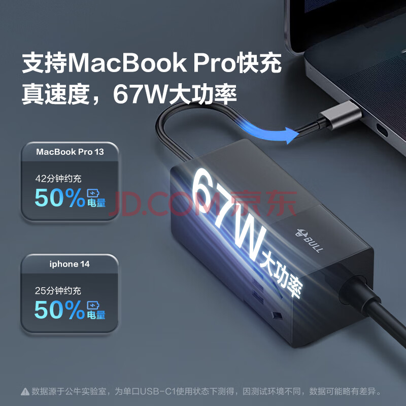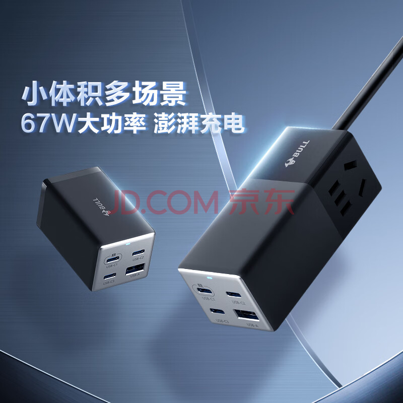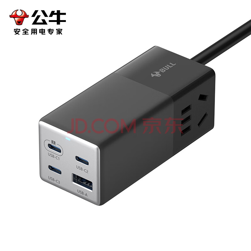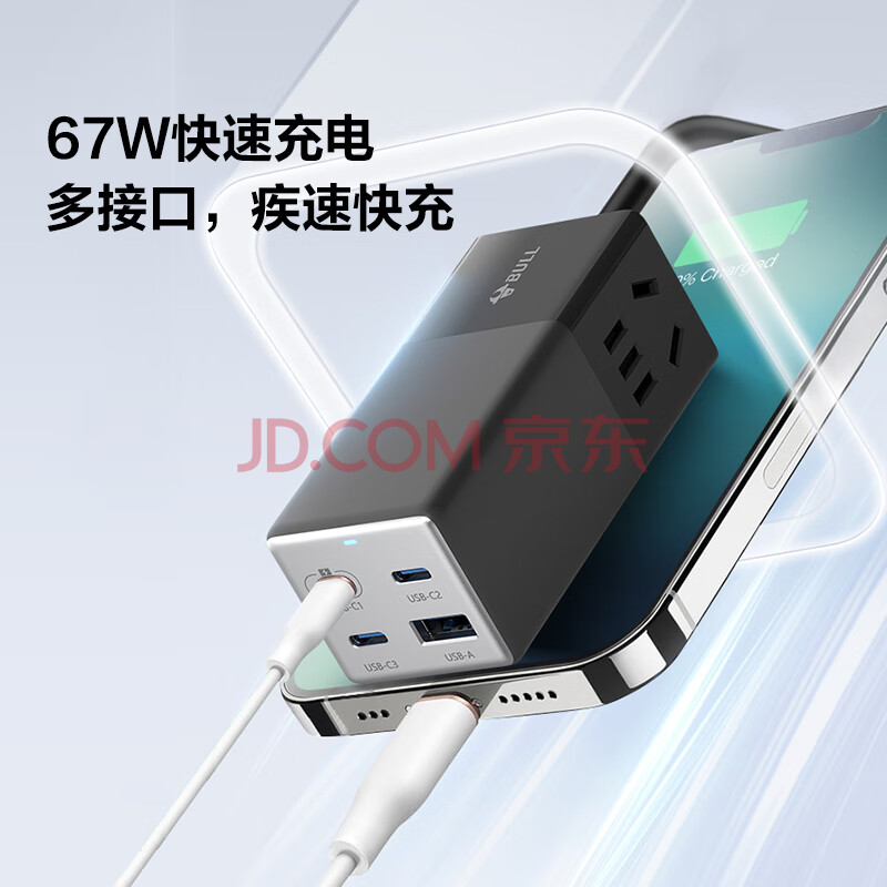 商品相册:公牛(BULL)氮化镓67W快充笔记本插座/桌面充电站/插线板/插排/小电舱 适用iphone17 USB(3C1A)+2孔 无开关第