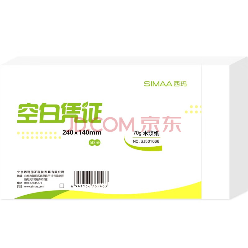 商品相册:西玛(SIMAA) 空白凭证纸发票版240*140mm 适用于金蝶用友财务软件记账凭证打印纸 空白单据 500张/包第