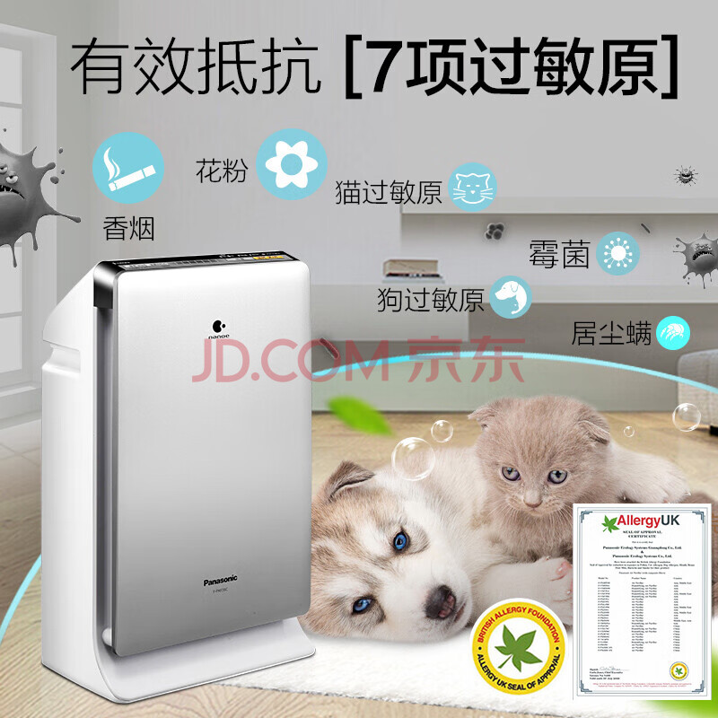 商品相册:松下(Panasonic)家用空气净化器除甲醛 纳诺怡除菌宠物除异味除过敏源 高效净烟 空气净化机 PXF35C礼品第
