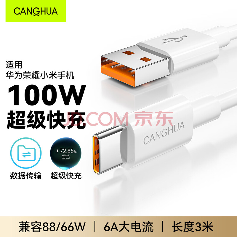 商品相册:CangHua 充电线type-c数据线超长3米100W/88W超级快充线适用华为mate80/pura70荣耀小米手机车载充电器线第