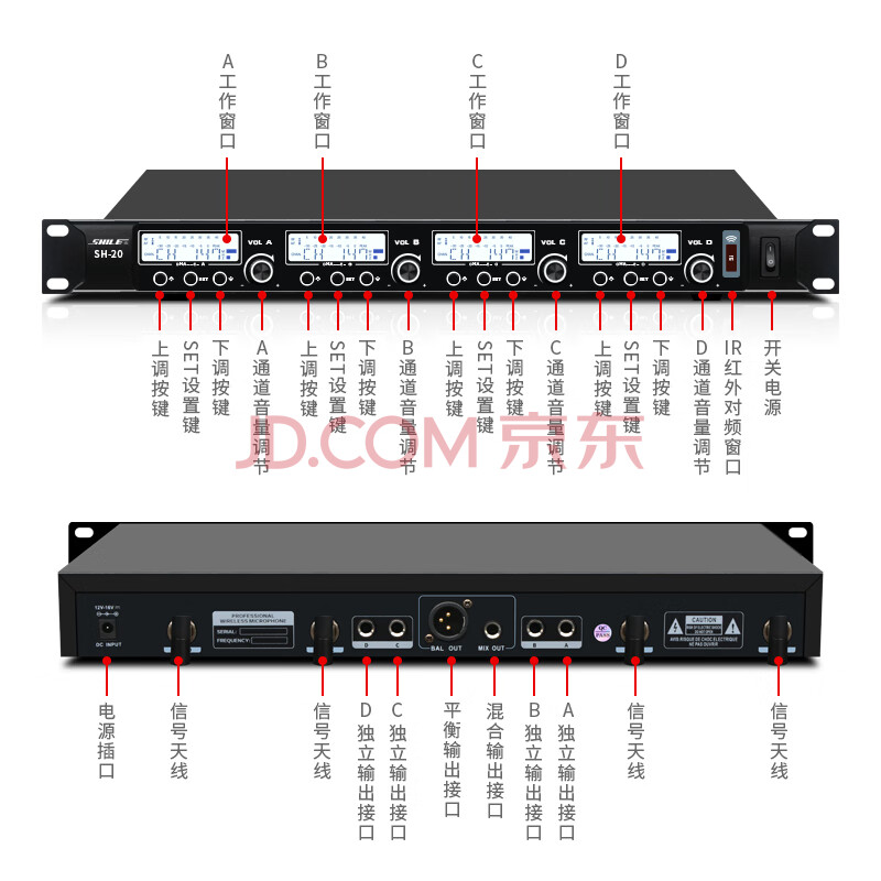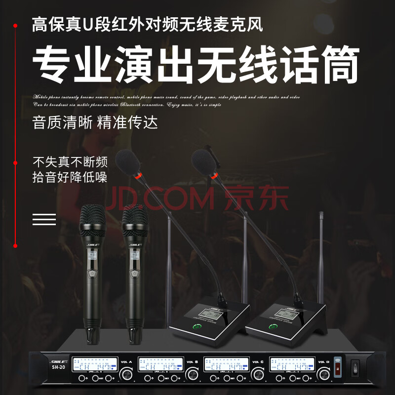 商品相册:狮乐(SHILE)一拖四无线麦克风 鹅颈话筒视频会议主持培训演讲专业舞台演出无线话筒 SH-20配4手持第