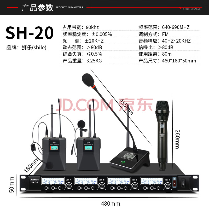 商品相册:狮乐(SHILE)一拖四专业会议室无线麦克风 鹅颈话筒视频会议主持培训演讲桌面长杆款无线话筒 SH-20配4会议第