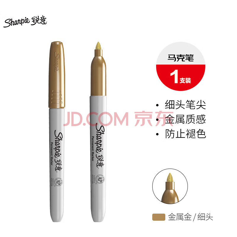 商品相册:锐意(Sharpie)2.5mm细头油性马克笔金属金色单支装防水防褪色速干记号海报明星发布会签名速写绘画贺卡美育第
