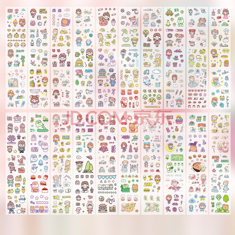 商品相册:誉禾长条PET贴纸可爱防水手帐装饰素材学生DIY手账贴画20张 4246第