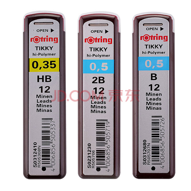 商品相册:红环(rOtring)自动铅笔铅芯0.5mm 德国专业替换铅芯 学生绘图设计办公用品 -2B单支装第
