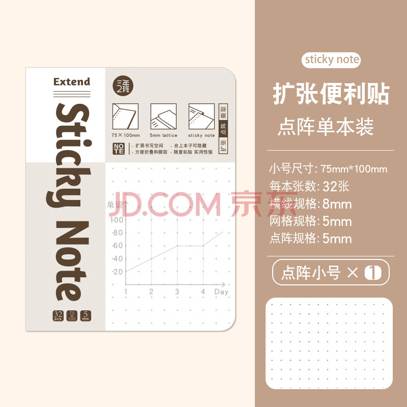 商品相册:三年二班 简约可折叠扩张便利贴32张/本学生用考研有粘性便签贴笔记贴补充贴N次贴便签纸 点阵(小号)第