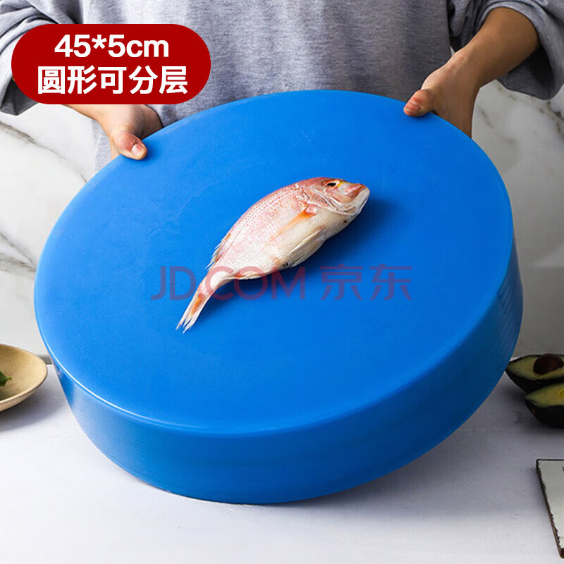 商品相册:全适 45*5cm圆形可分层加厚PE环保切肉切菜板 剁骨砧板 塑料菜板 蓝色第