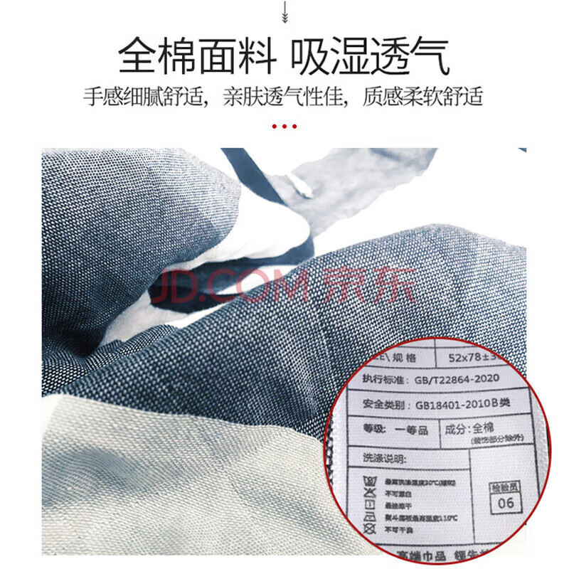 商品相册:艾薇枕巾全棉一对学生儿童枕巾夹棉家用枕头巾 蓝色格子 52*78cm第