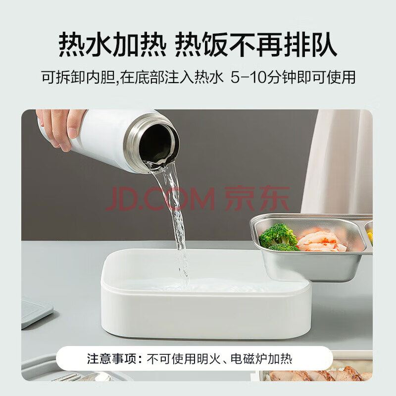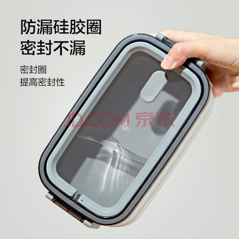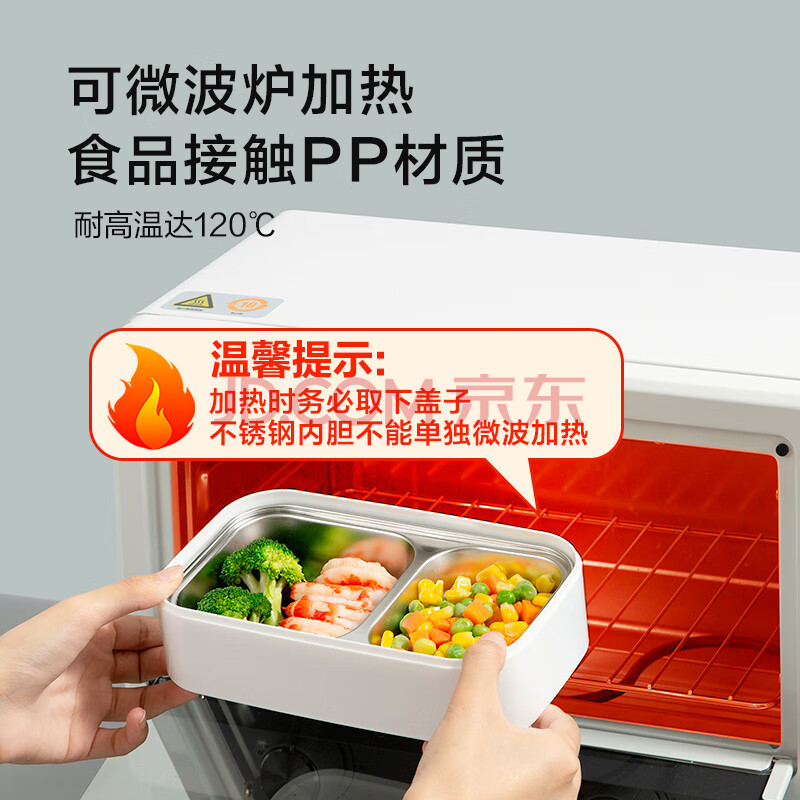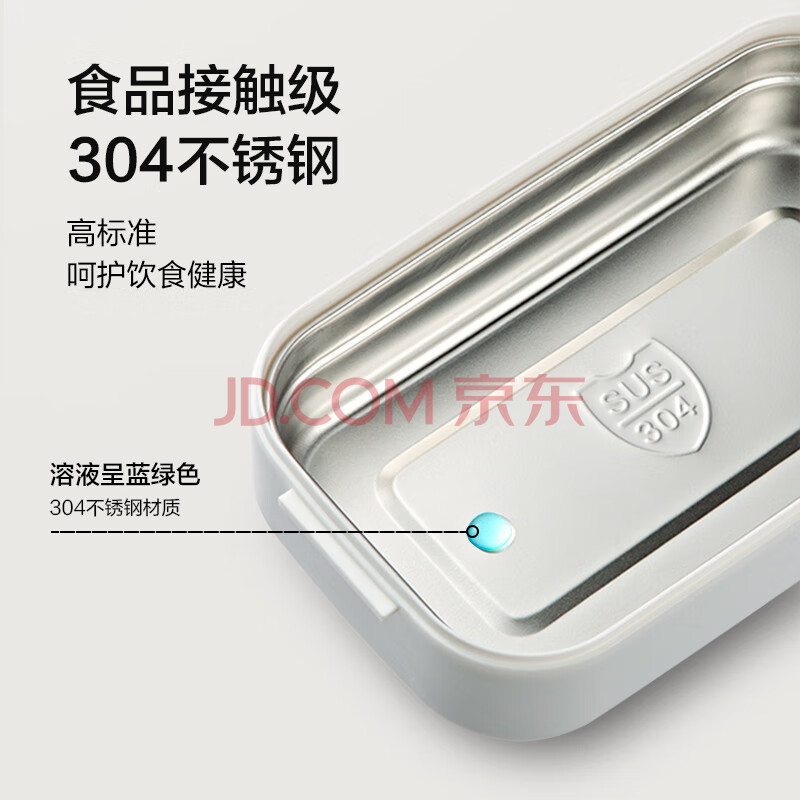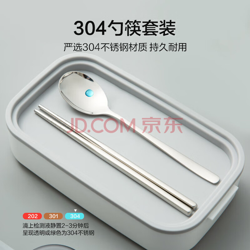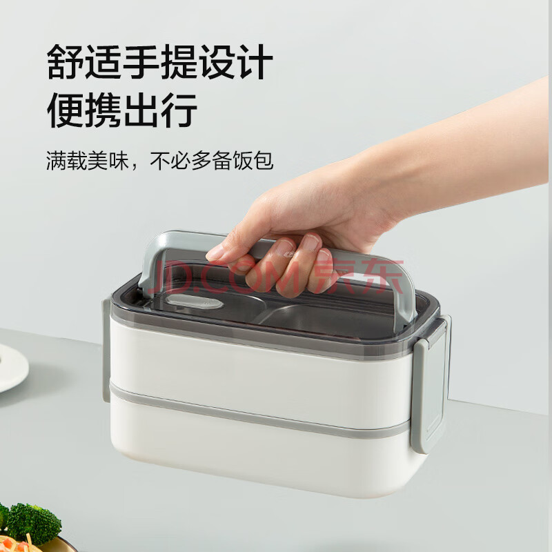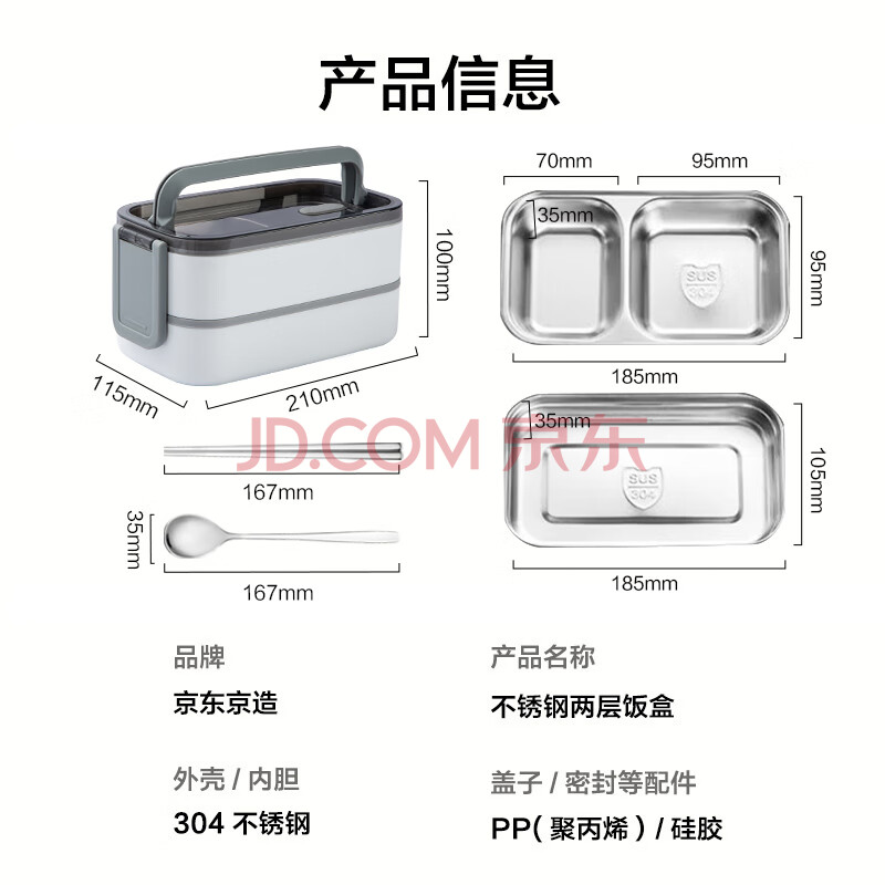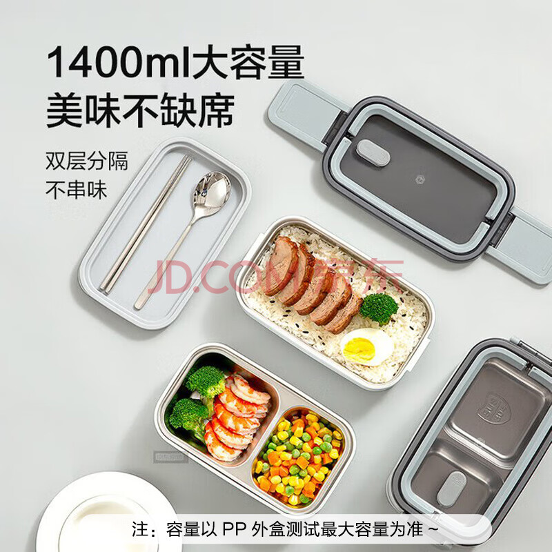 商品相册:京东京造 饭盒 上班族304不锈钢便当餐盒小学生可微波炉双层1.4L 配筷勺第
