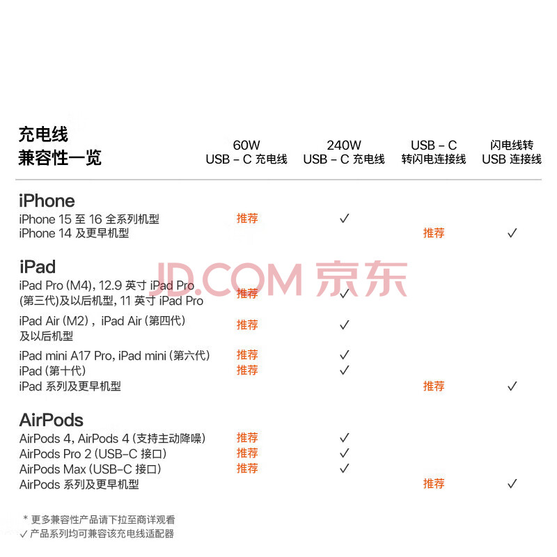 商品相册:Apple/苹果原装快充数据线USB-C转闪电连接线 快充数据线1米 快充数据线1米第