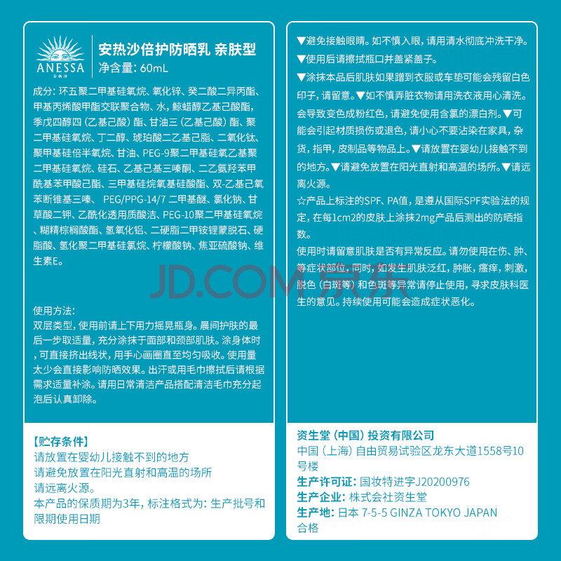 商品相册:安热沙(Anessa)【采销直播间】倍护防晒乳亲肤型60mL粉金瓶防晒霜京东自营女神节第