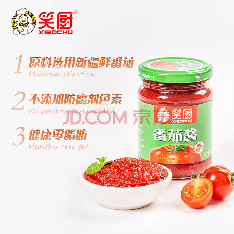 商品相册:笑厨(XIAOCHU)新疆番茄酱225g*1瓶【0脂肪】配料仅鲜番茄意面酱家用调味酱第