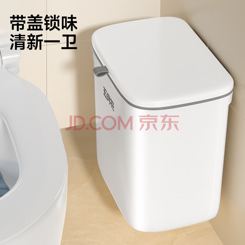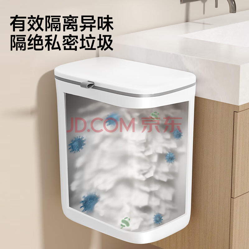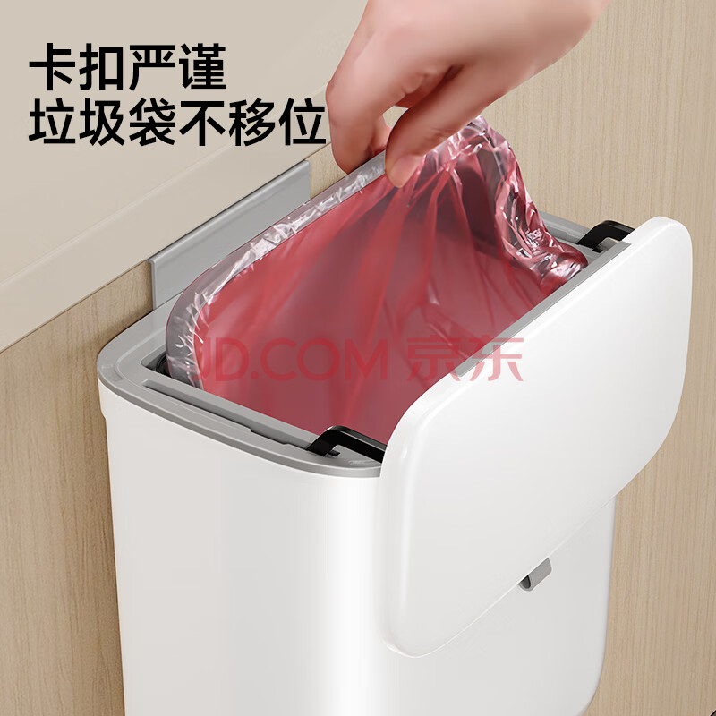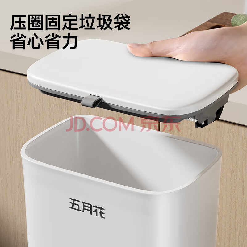商品相册:五月花壁挂垃圾桶揭盖式9L带盖锁味可壁挂悬挂不弯腰家用厨房卫生间第
