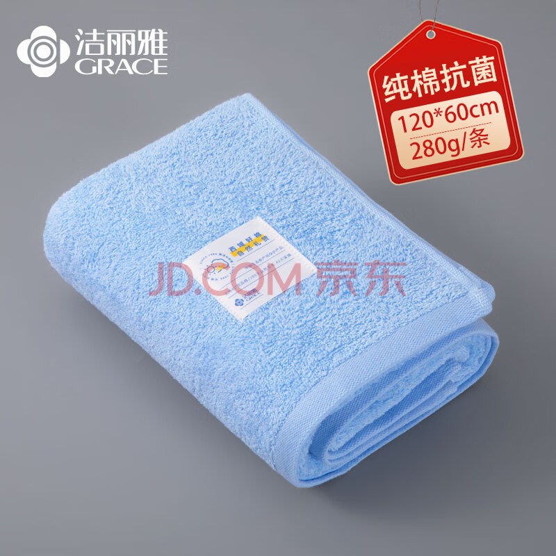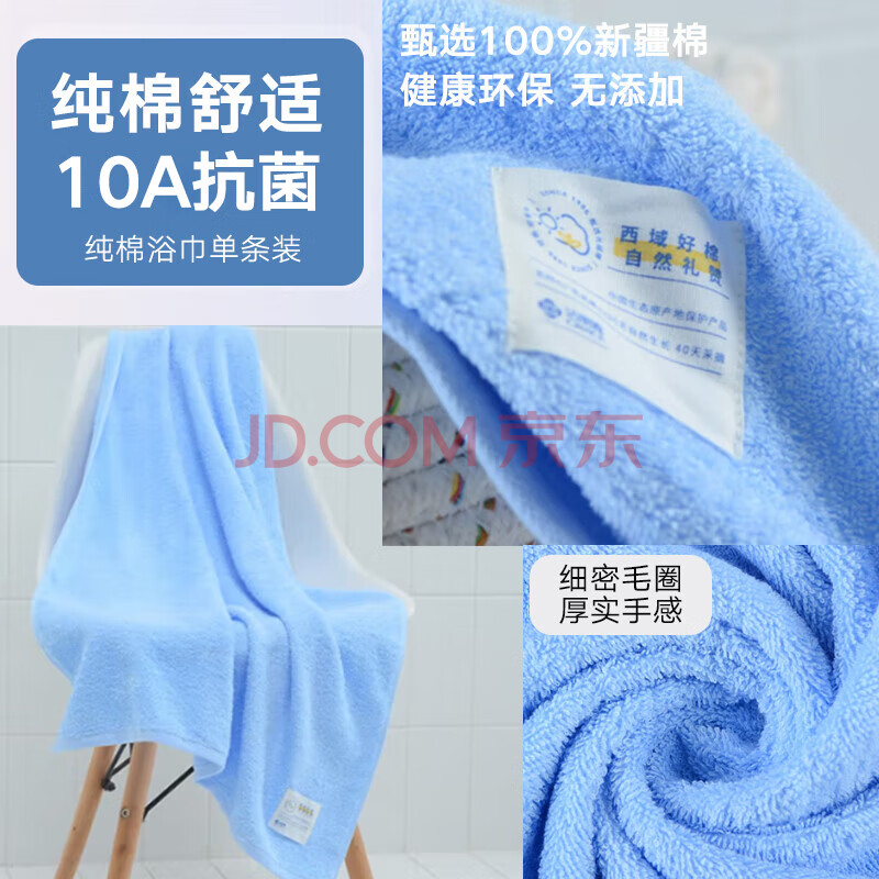 商品相册:洁丽雅(Grace)10A抗菌浴巾纯棉男女家用柔软吸水速干婴幼儿可用单条装 兰色第
