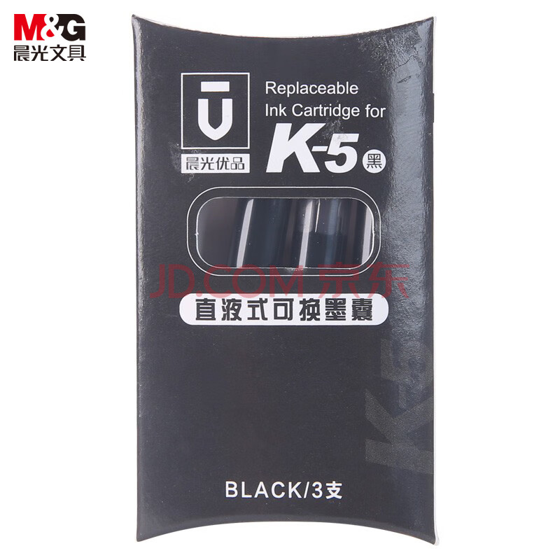 商品相册:晨光(M&G)文具0.8ml黑色墨囊 K5直液式速干中性笔替换墨囊 学生墨水 3支装AIC24502第