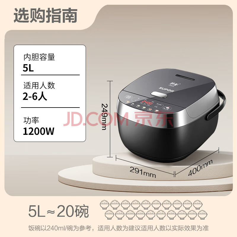 商品相册:苏泊尔(SUPOR)ZMD安心系列 电饭煲电饭锅家用5L大容量智能预约球釜IH电饭煲适用3-4人 曜石黑SF50HC535第