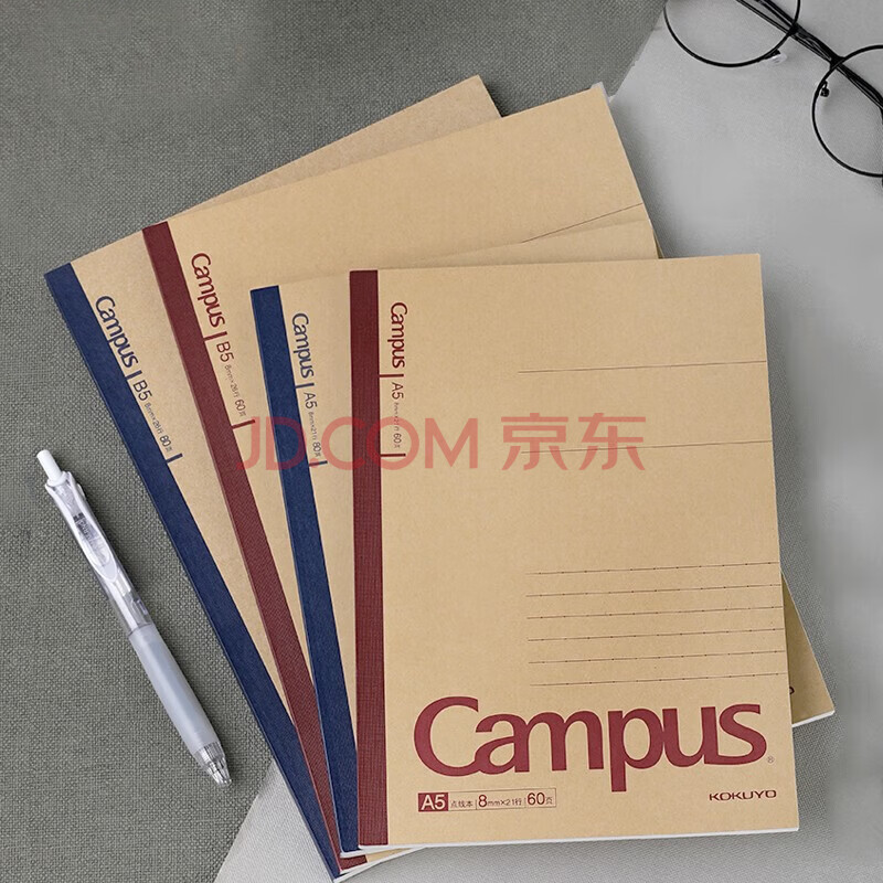 商品相册:国誉(KOKUYO)(KOKUYO)A5笔记本子Campus无线装订本记事本牛皮纸 8mm点线*21行 40张4本颜色随机 WCN-CNB3415第