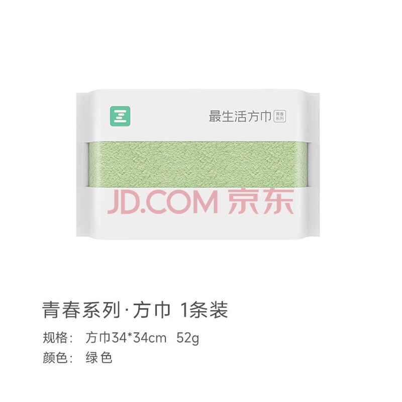 商品相册:最生活方巾纯棉洗脸面巾 A类柔软家用小毛巾吸水透气擦脸口水巾 绿色第