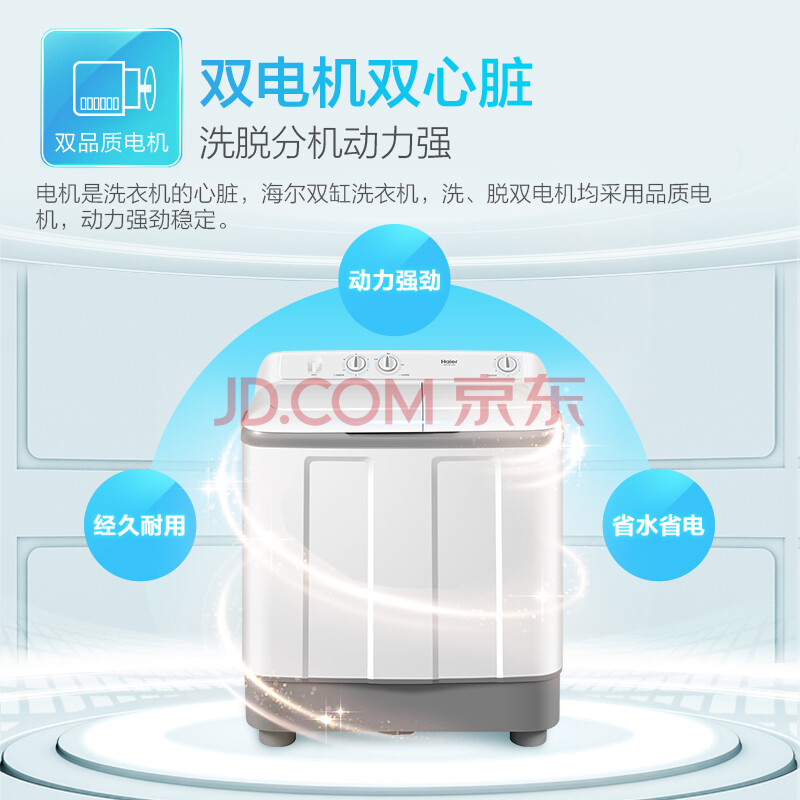 商品相册:海尔(Haier)半自动双桶洗衣机 12KG大容量 双缸 家用宿舍 京东自营 XPB120-729S第