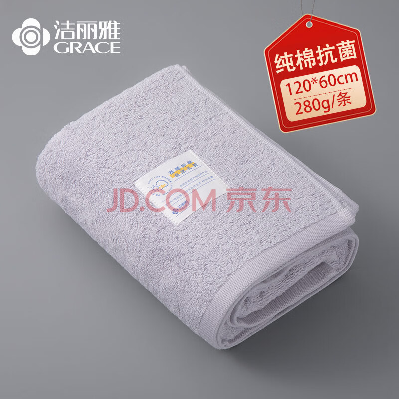 商品相册:洁丽雅(Grace)A类抗菌浴巾纯棉男女家用柔软吸水速婴幼儿可用浴巾单条装 灰色第
