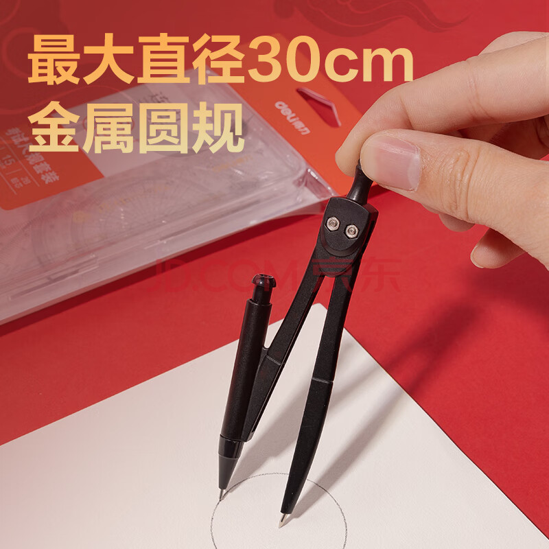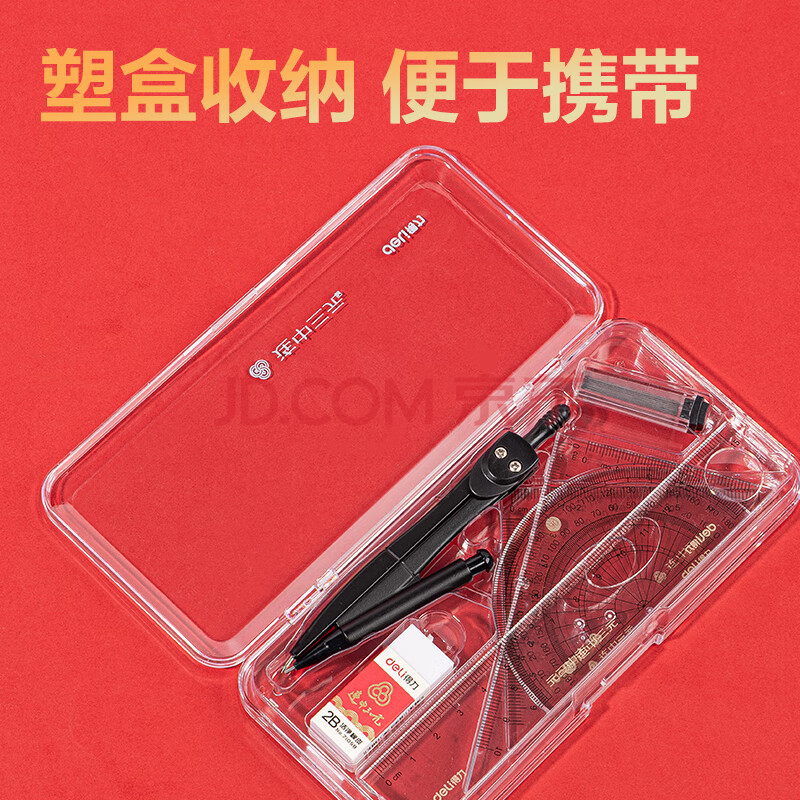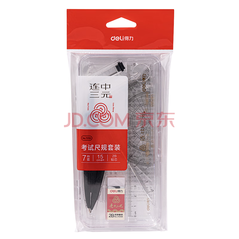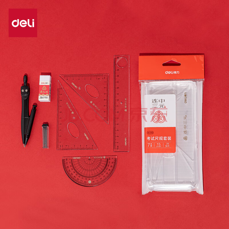 商品相册:得力(deli)【连中三元】得力连中三元尺规套装 高考中考金属圆规/15cm直尺/三角尺/量角器/1块橡皮第