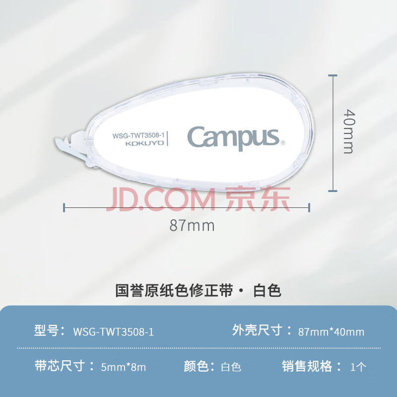 商品相册:国誉(KOKUYO)学生Campus原纸色替芯式修正带修改带涂改带 5mm*8m 可换替芯 本体 白色WSG-TWT3508-1第