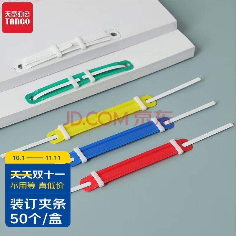 商品相册:天章办公(TANGO)80mm装订夹条50个/盒彩色塑料装订夹双孔两孔打孔器财务单据简易文件活页耐用塑胶第