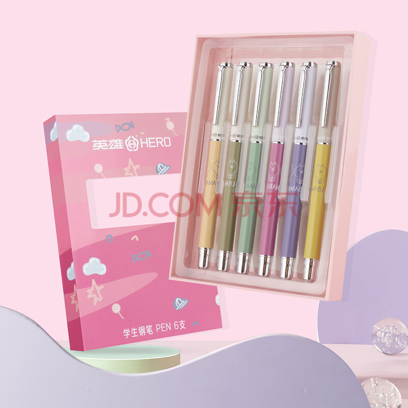 商品相册:英雄(HERO) 钢笔 学生卡通文具三年级正姿练字日常书写套装 女款 6支装(颜色随机)第