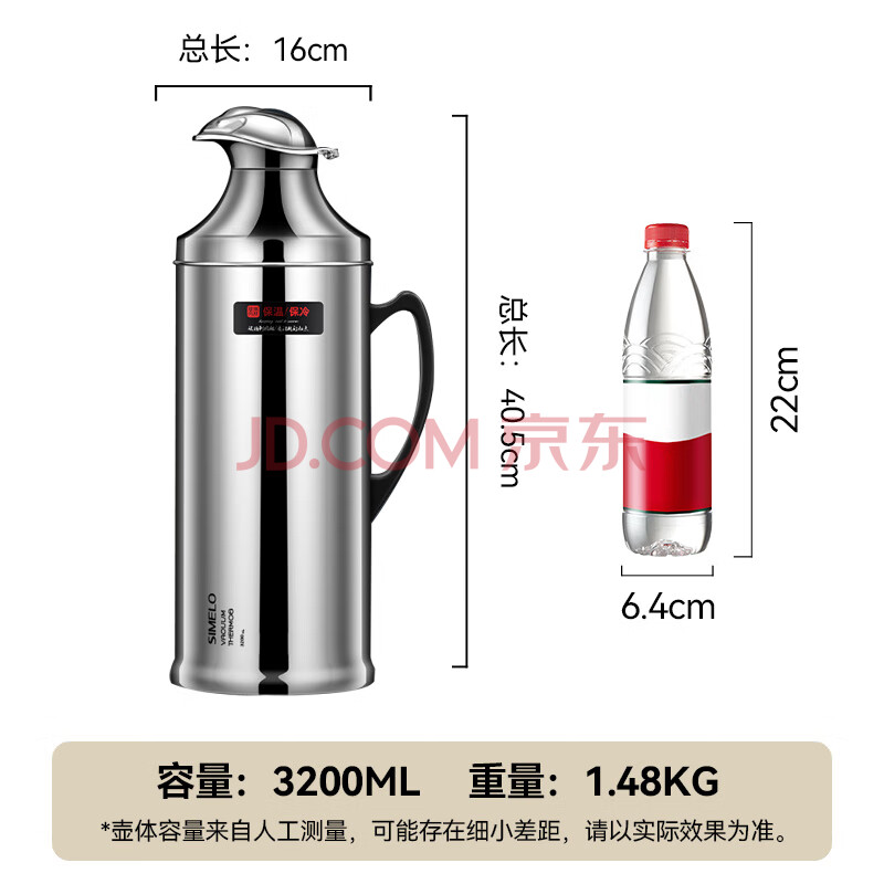 商品相册:SIMELO保温壶家用玻璃内胆保温瓶热水瓶暖壶学生宿舍开水瓶3.2L精钢鸭嘴第