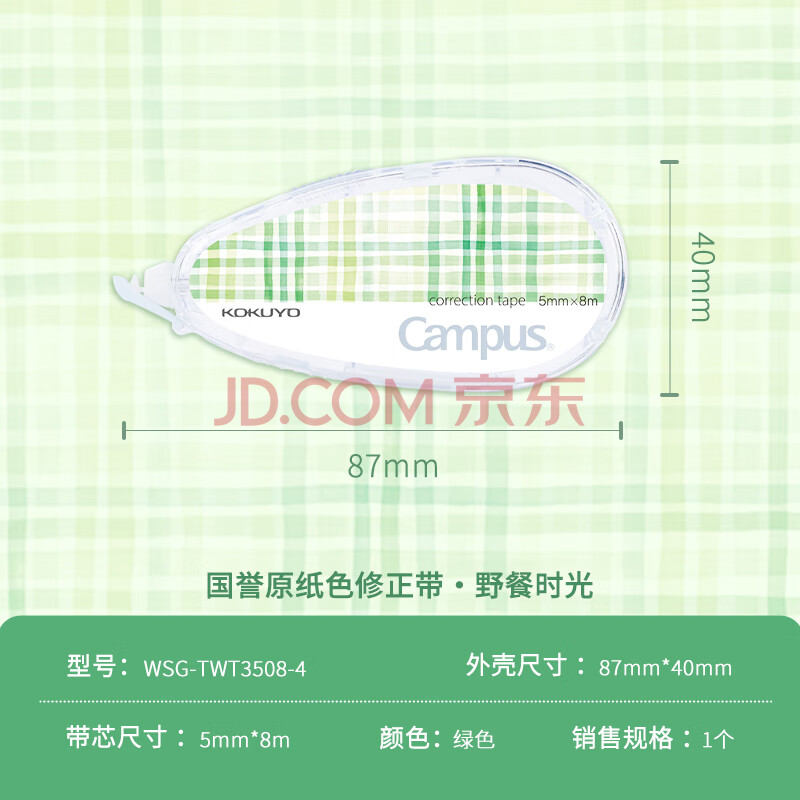 商品相册:国誉(KOKUYO)学生Campus原纸色替芯式修正带修改带涂改带 5mm*8m 本体 水绘风绿WSG-TWT3508-4第