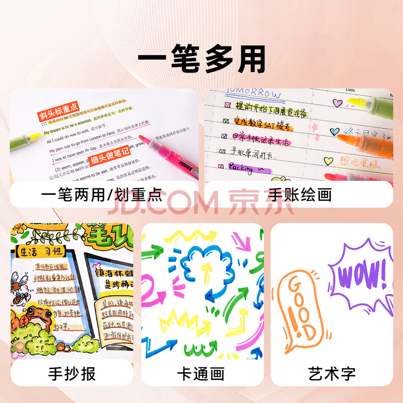 商品相册:白雪(snowhite)直液式荧光笔 斧型笔头重点标记笔记号笔 手账彩色荧光笔 5支套装 PVP626第