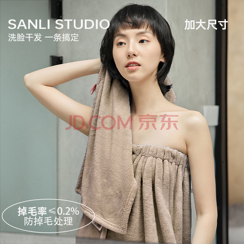 商品相册:三利7a抗菌加厚毛巾2条A类吸水男士女洗脸洗澡洗脸专用成年人棕/灰第