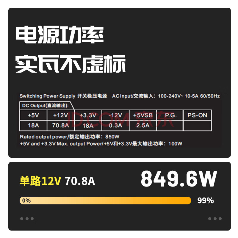 商品相册:长城(Great Wall)额定850W GX金牌全模电脑电源(ATX3.1/PCIe5.1/自动启停/全电压/14CM大风扇)第