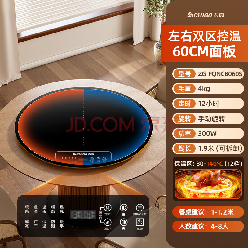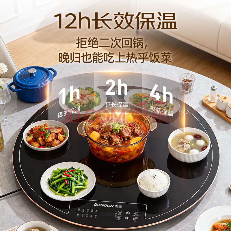 商品相册:志高(CHIGO)【分区控温】暖菜板 热菜板保温板饭菜加热板2025新款家用多功能保温圆形可旋转桌垫ZG-FQNCB60S第