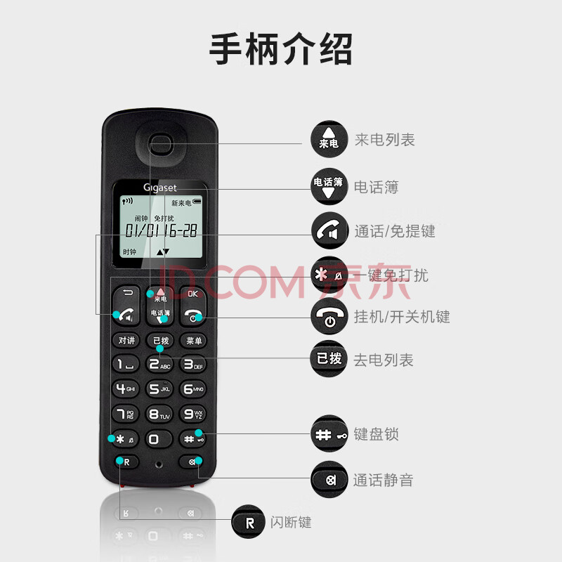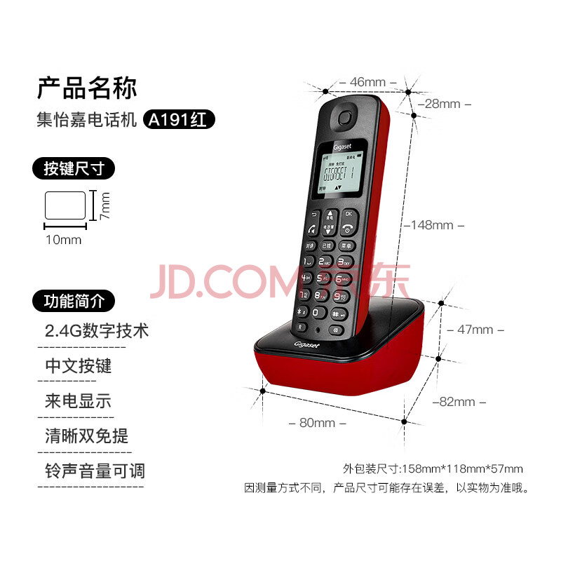商品相册:Gigaset原西门子品牌电话机A191数字无绳电话单机中文显示双免提家用办公座机子母机(魔力红) 第