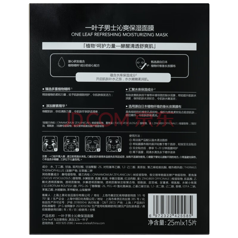 商品相册:一叶子男士沁爽保湿面膜控油舒缓补水保湿清洁面膜生日礼物男第