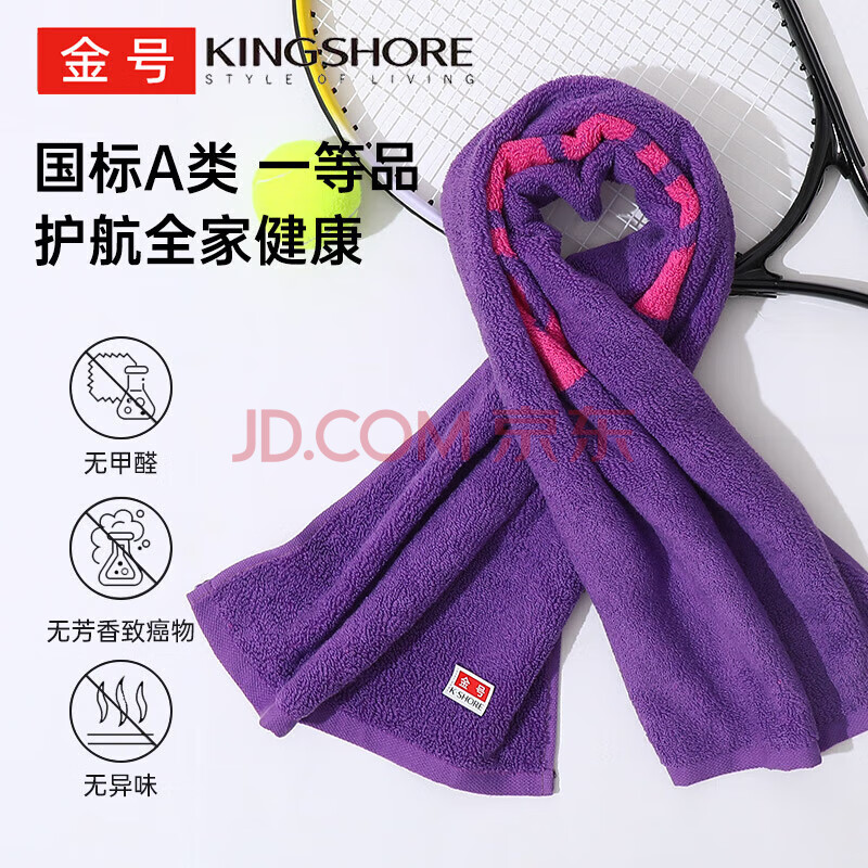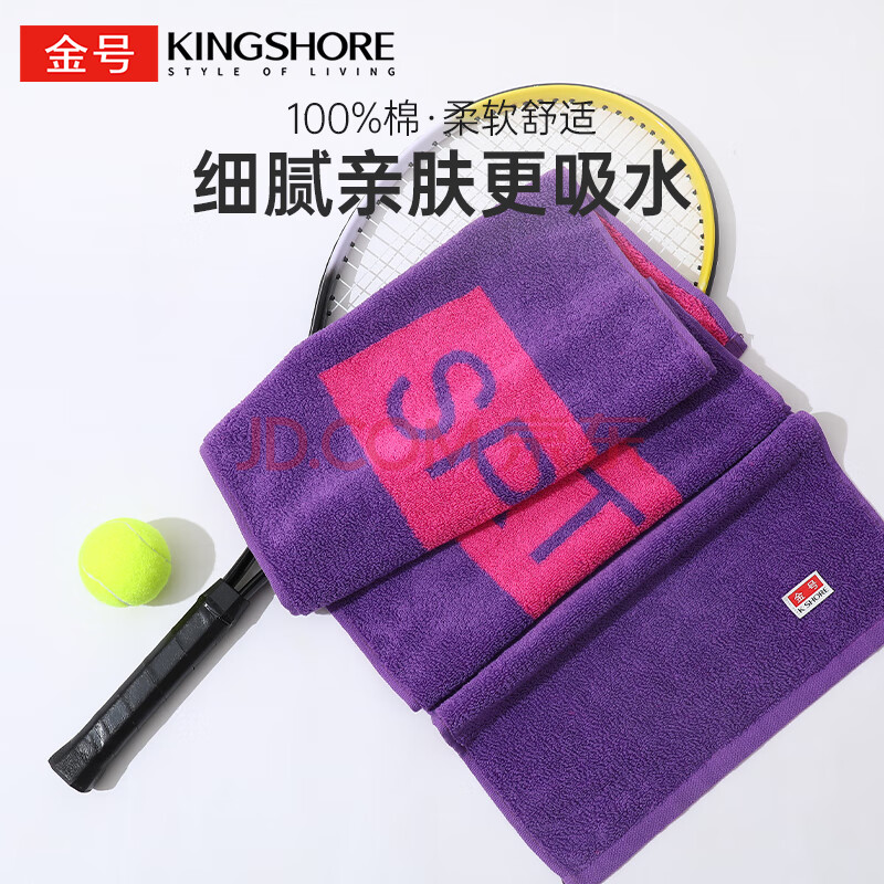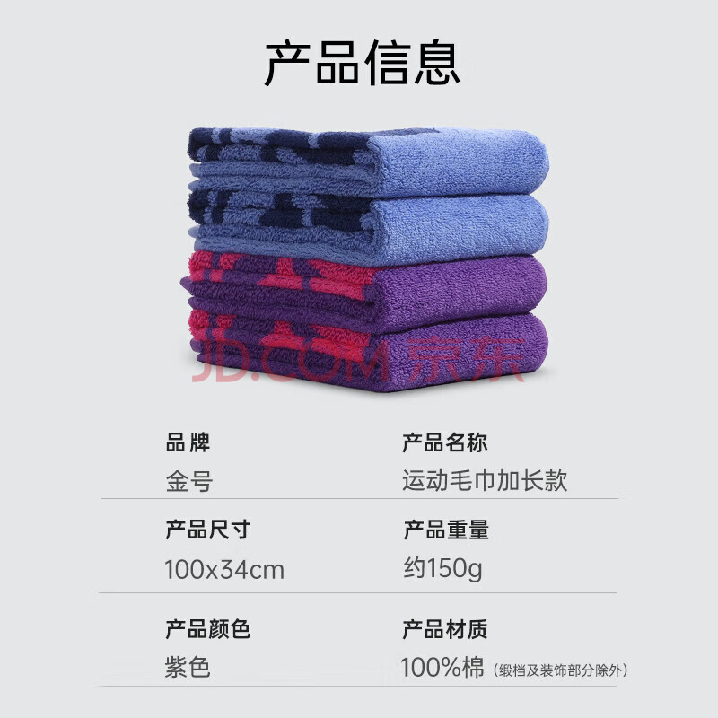 商品相册:金号毛巾家纺 A类纯棉吸水运动巾 加大加厚洗脸巾单条紫色 100*34cm第