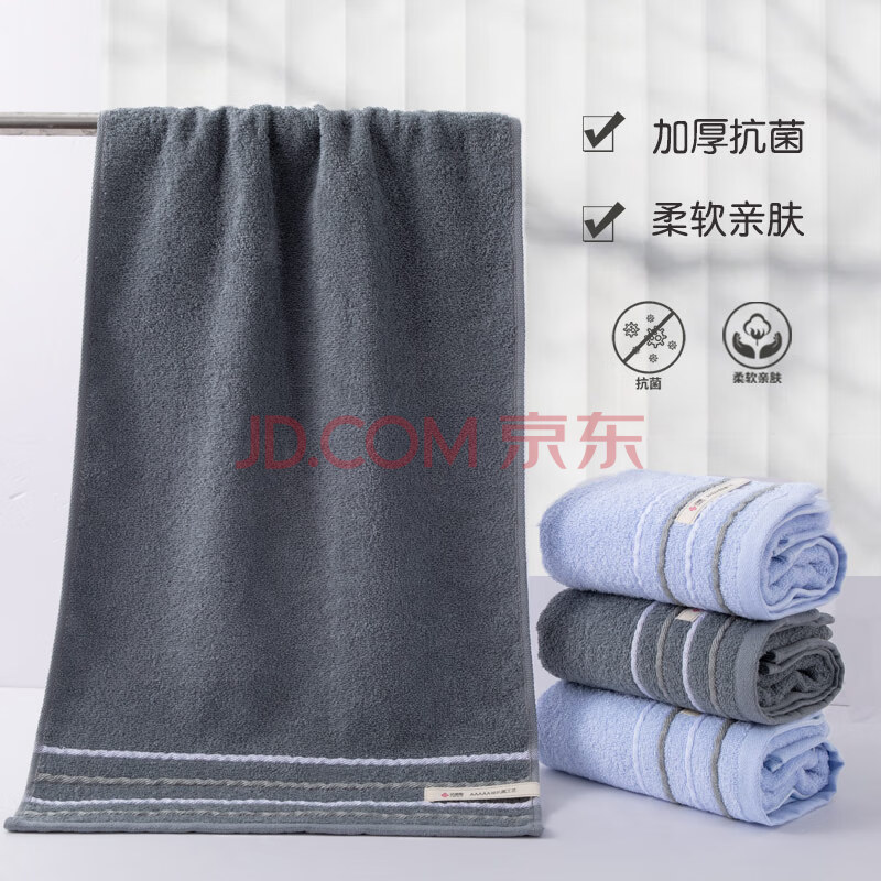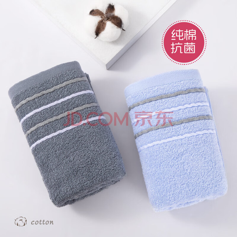 商品相册:洁丽雅(Grace)新疆棉抗菌防螨毛巾长绒棉10A级毛巾2条装 纯棉柔软强吸水洗脸巾第