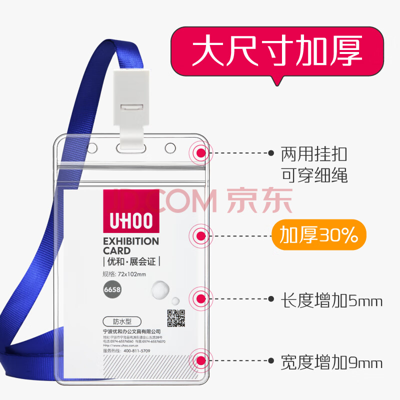 商品相册:优和(UHOO)防水PVC展会证卡套 24个卡套+24根挂绳 竖式 透明 工作证员工牌胸卡出入证6658-1第