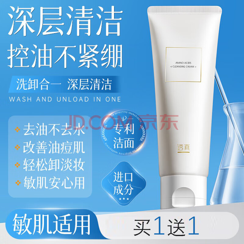 商品相册:透真氨基酸洗面奶男控油祛痘除螨虫去黑头收缩毛孔深层清洁面乳120g第