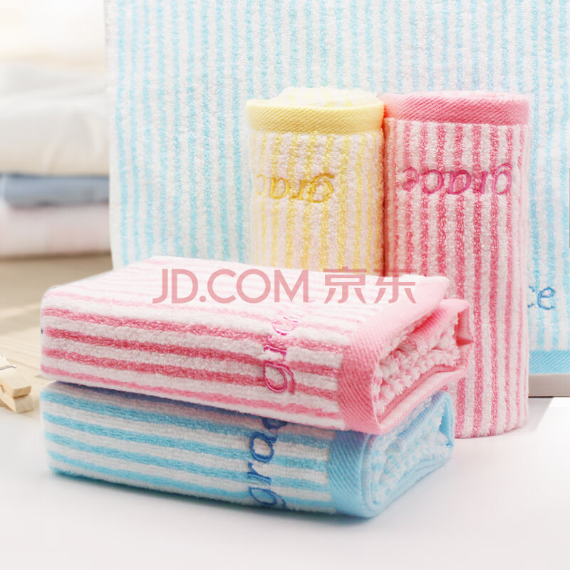 商品相册:洁丽雅(Grace)新疆棉抗菌毛巾2条装半无捻绣花舒适纯棉洗脸毛巾运动第