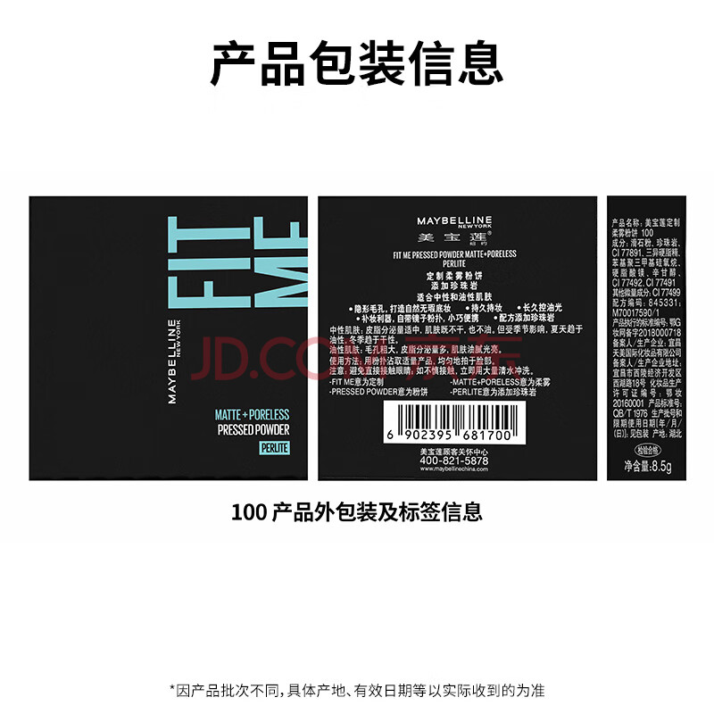 商品相册:美宝莲FITME粉饼哑光8.5g 定妆补妆控油光100白皙肤色生日礼物女第