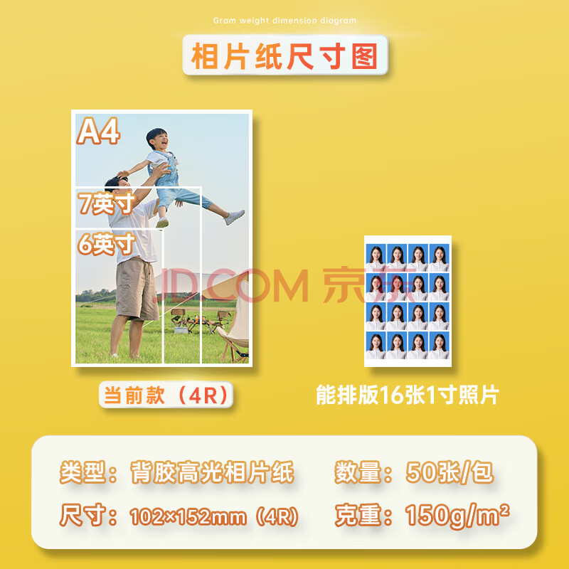 商品相册:得力(deli)4R(6英寸) 150g带背胶高光面照片纸 可粘贴相片打印纸 50张/盒 11829第