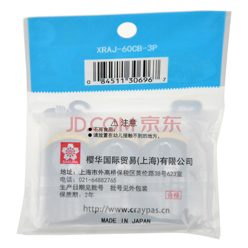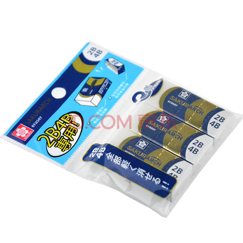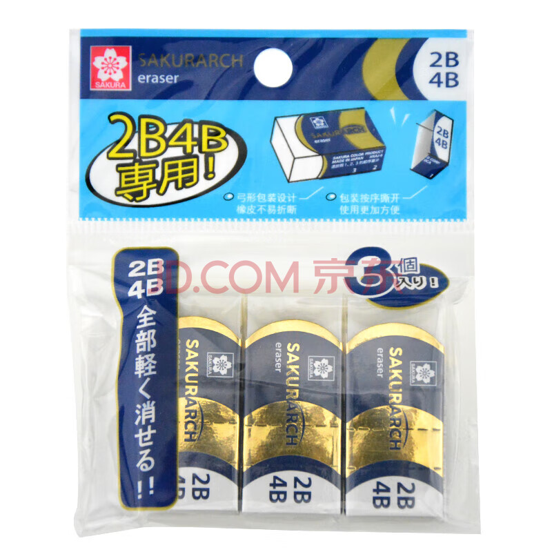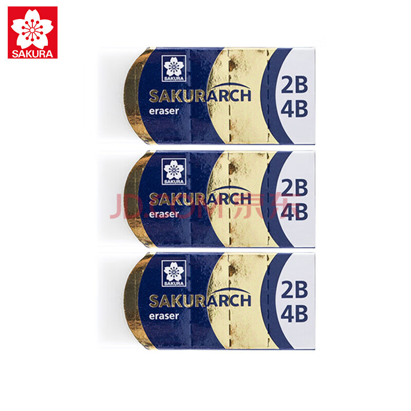 商品相册:樱花(SAKURA)学生橡皮擦2B4B橡皮考试专用美术素描绘图 3块套装(蓝色)第