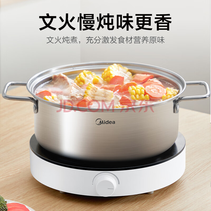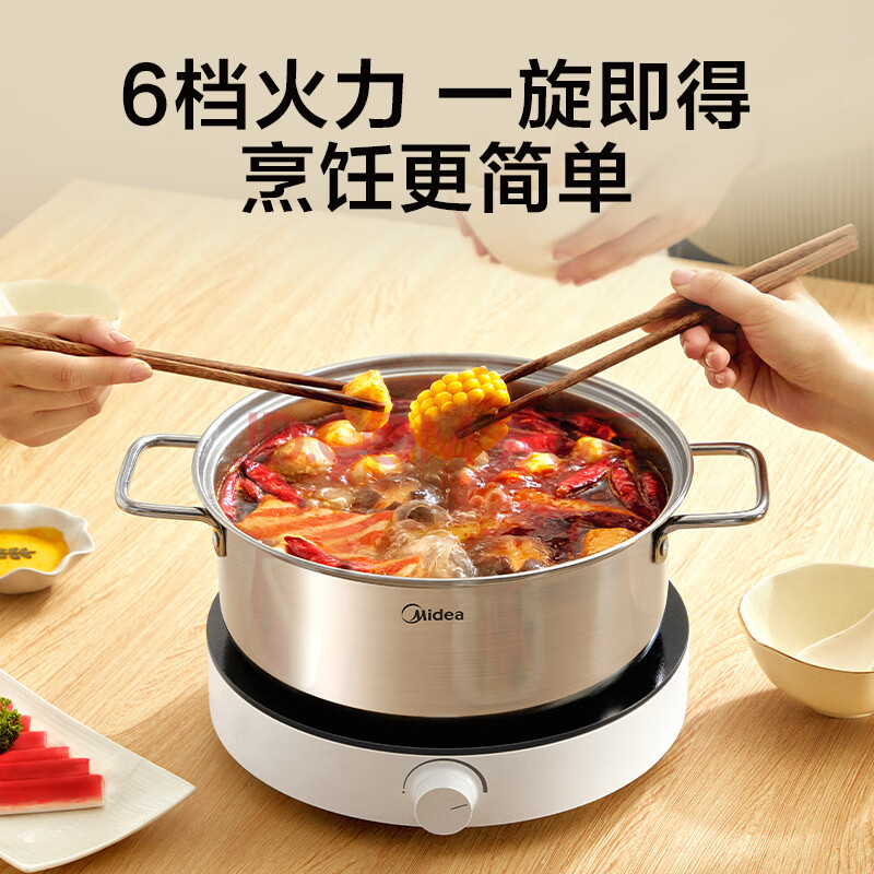 商品相册:美的(Midea)电磁炉圆形无名火厨房家用多功能大功率 爆炒火锅炒菜蒸煮烧水 旋钮操控 C22-RX22H0107第
