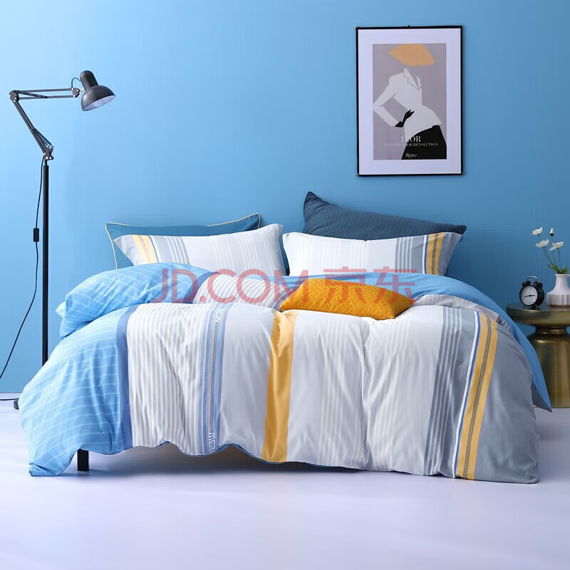 商品相册:水星家纺被套100%纯棉抗菌单件床上用品单人简约全棉被罩200x230cm 简几第