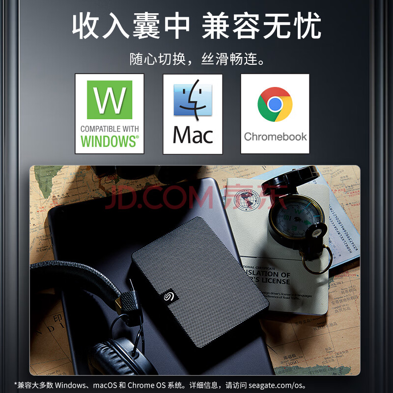 商品相册:希捷(SEAGATE)移动硬盘 2TB USB3.0高速 希捷睿翼 2.5英寸 机械硬盘 黑 便携外接存储办公学习 数据恢复服务第